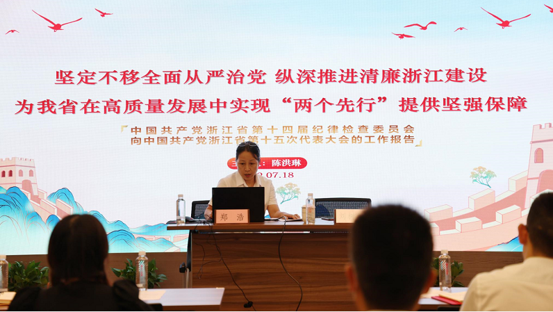 陳洪琳從過去五年的工作回顧、工作體會(huì)以及工作建議三大部分對(duì)省第十四屆紀(jì)律檢查委員會(huì)工作報(bào)告進(jìn)行了解讀,并強(qiáng)調(diào)廣大黨員群眾要深入學(xué)習(xí)貫徹習(xí)近平總書記關(guān)于黨的自我革命的戰(zhàn)略思想,把全面從嚴(yán)治黨向縱深推進(jìn),共同營造風(fēng)清氣正的政治生態(tài),為共同富裕先行和省域現(xiàn)代化先行提供有力保障。