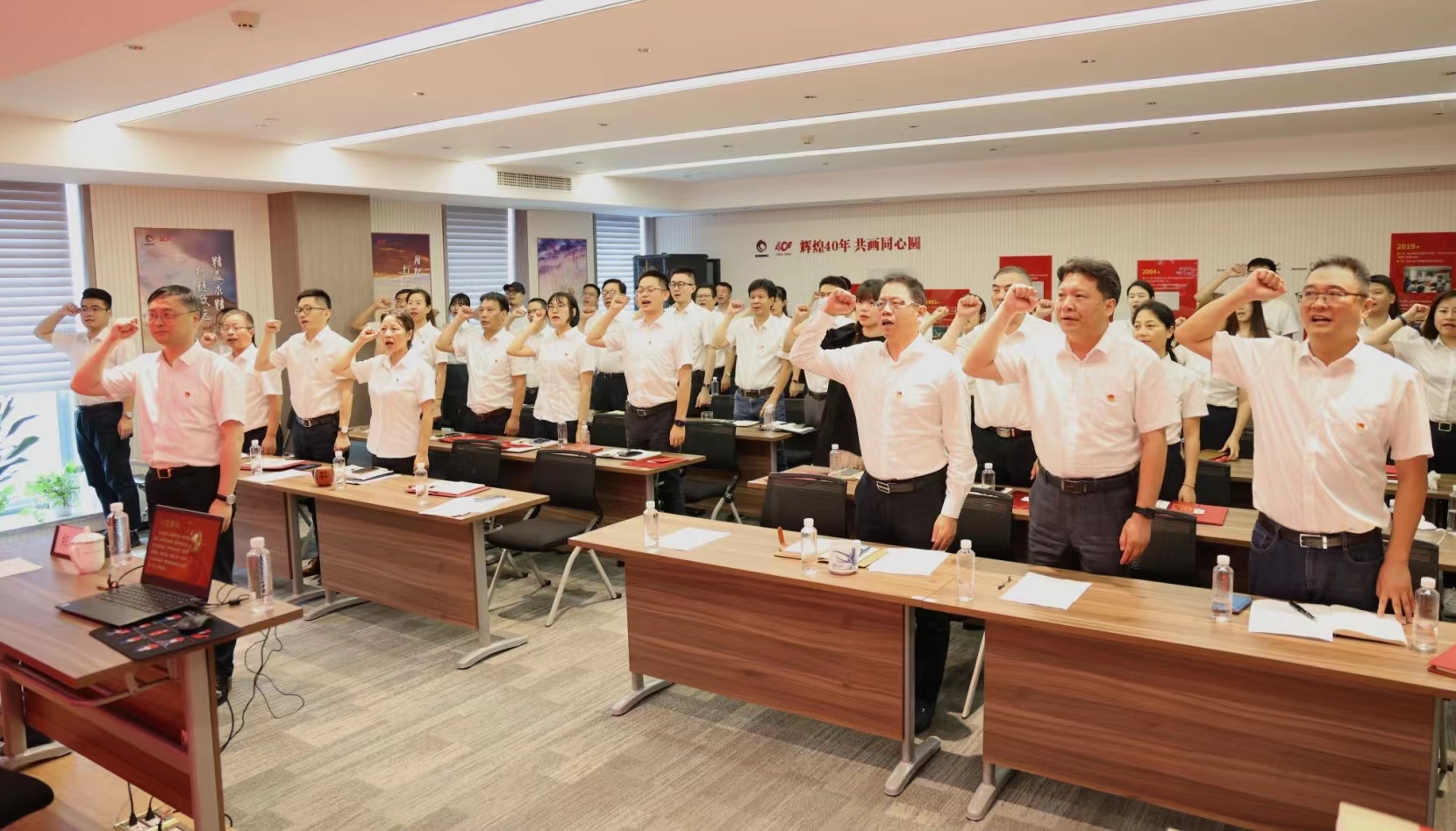 7月18日下午,浙江省冶金物資有限公司各黨支部圍繞“回顧光輝歷程,凝聚奮進(jìn)力量”召開主題黨日活動(dòng),專題學(xué)習(xí)省第十五次黨代會(huì)精神。杭鋼集團(tuán)黨委委員、副總經(jīng)理劉樹林出席會(huì)議并宣講浙江省第十五次黨代會(huì)精神,會(huì)議由公司黨委書記、董事長鄭浩主持召開,冶金物資黨委委員、總經(jīng)理徐華金,黨委委員、紀(jì)委書記陳洪琳,黨委委員、副總經(jīng)理陳建,全體黨員及入黨積極分子等近60人參加會(huì)議。