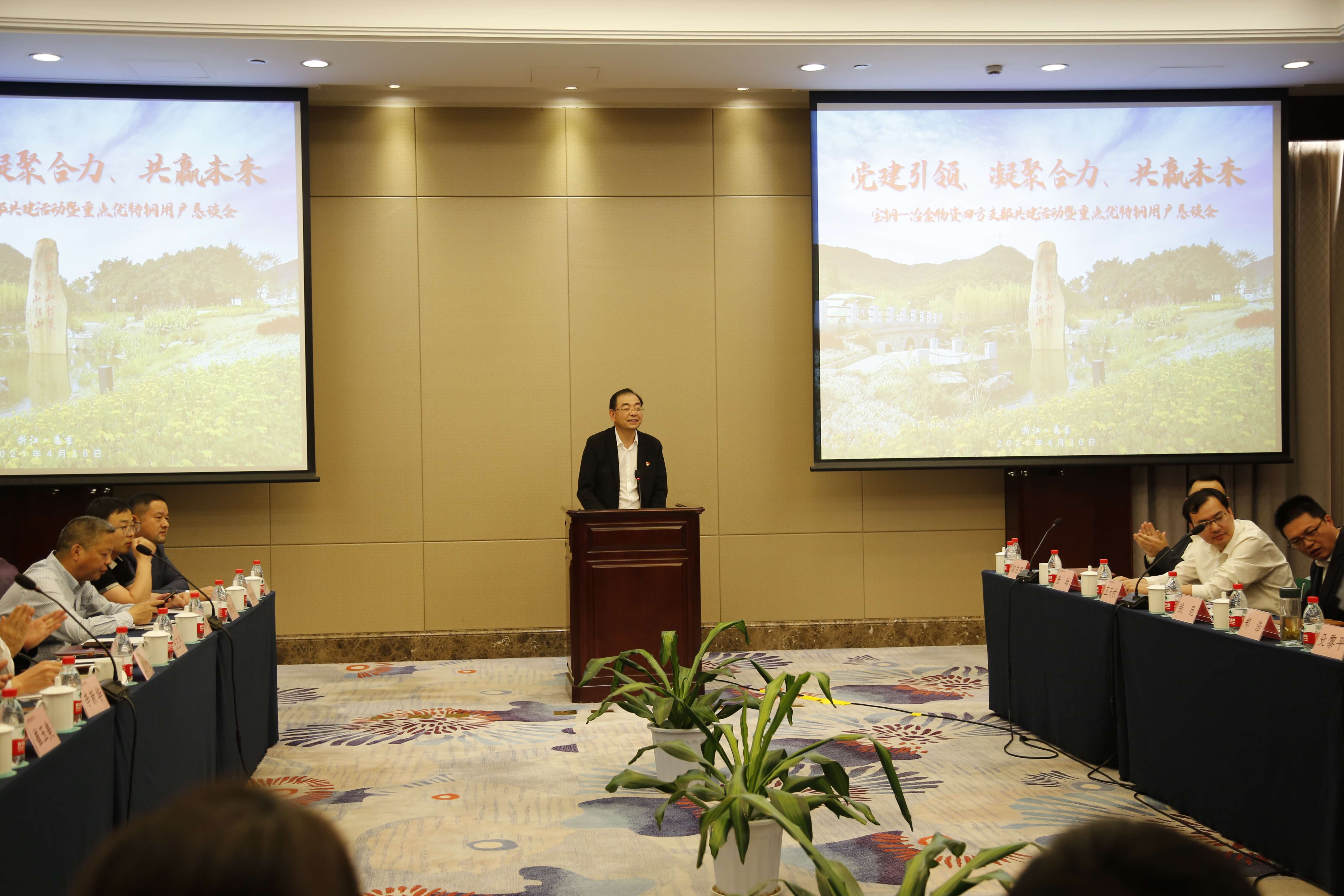 426日下午,冶金物資第一黨支部和寶鋼營銷中心熱板與工程材料銷售部黨支部、寶鋼鋼貿公司第一黨支部、梅鋼制造管理部產品制造黨支部開展結對共建交流活動,并在杭鋼集團公司黨委副書記殳黎平,梅鋼副總經理聞發平、總經理助理程乃良及冶金物資、寶鋼營銷中心、寶鋼鋼貿、梅鋼等相關領導和供應鏈終端重點客戶代表60余人見證下簽訂四方支部共建合作協議書。